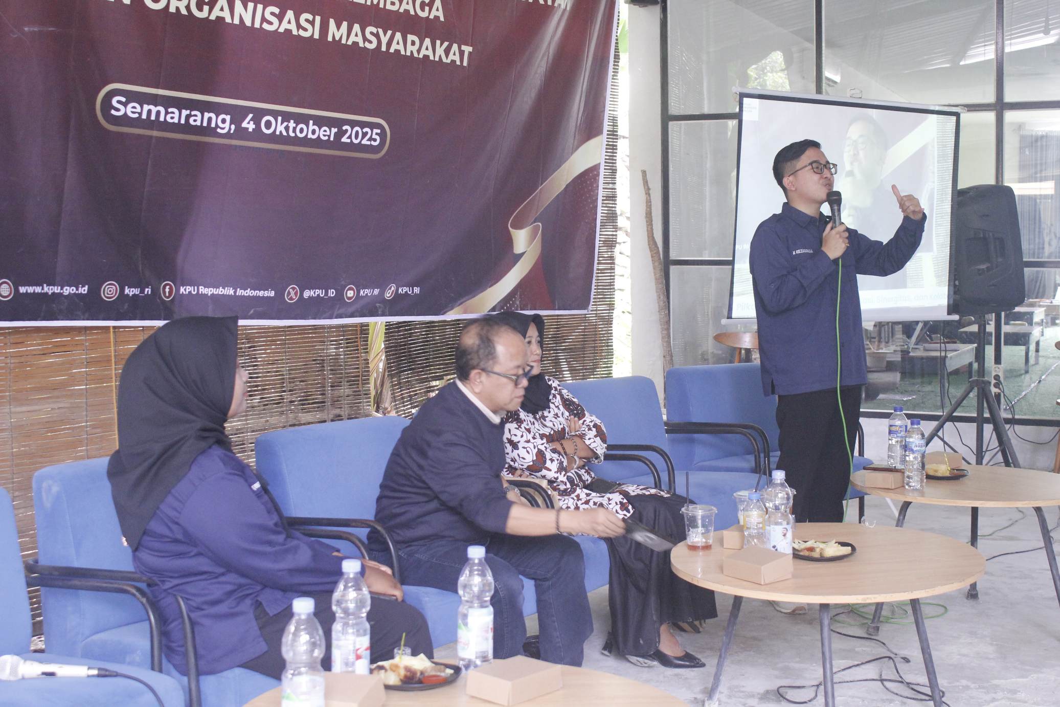 Acara ini menghadirkan narasumber Anik Sholihatun, S.Ag., M.Pd (Koordinator Daerah APD Akademi Pemilu & Demokrasi Jawa Tengah), Dr. Nur Hidayat Sardini, S.Sos., M.Si (Ketua Departemen Politik & Ilmu Pemerintahan FISIP UNDIP) dan M. Rikza Hasballa (Ketua umum Perisai Demokrasi Bangsa).