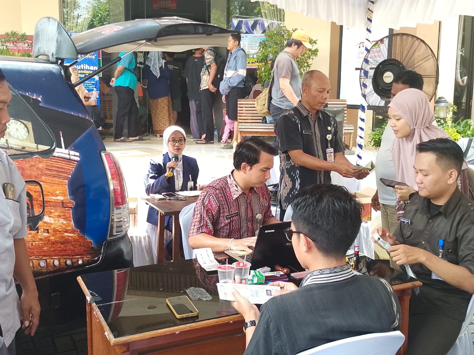 Muhammad Zakki, Pelaksana Tugas (Plt) Kepala Seksi Pajak Kendaraan Bermotor (PKB) Samsat Kudus, menyampaikan bahwa layanan keliling merupakan bentuk upaya jemput bola agar masyarakat tidak perlu datang ke kantor Samsat secara langsung.